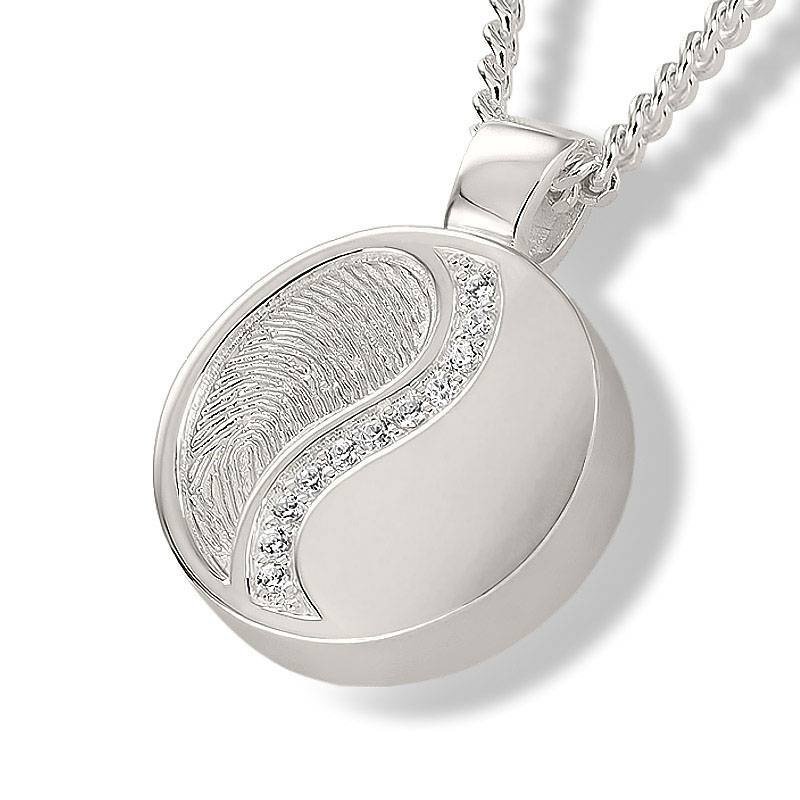 De Ashanger yin yang zirkonia met vingerafdruk - 925 Zilver is een prachtige ashanger van zilver met mooie zirkonia inleg, voor een persoonlijke & dierbare herinnering aan uw overleden dierbare. Naast een holle ruimte voor een symbolische hoeveelheid as wordt dit bijzondere sieraad verrijkt met de vingerafdruk - fingerprint van uw geliefde dierbare. De vingerafdruk geeft een bijzonder accent aan het sieraad en staat dan ook centraal binnen het ontwerp van deze mooie zilveren ashanger. Een uniek assieraad met een mooie afwerking, waarmee u (de herinneringen aan) uw dierbare altijd dicht bij u kunt dragen. Het dragen van een assieraad - fingerprint sieraad heeft voor veel mensen een positieve uitwerking gedurende of na het rouwproces.