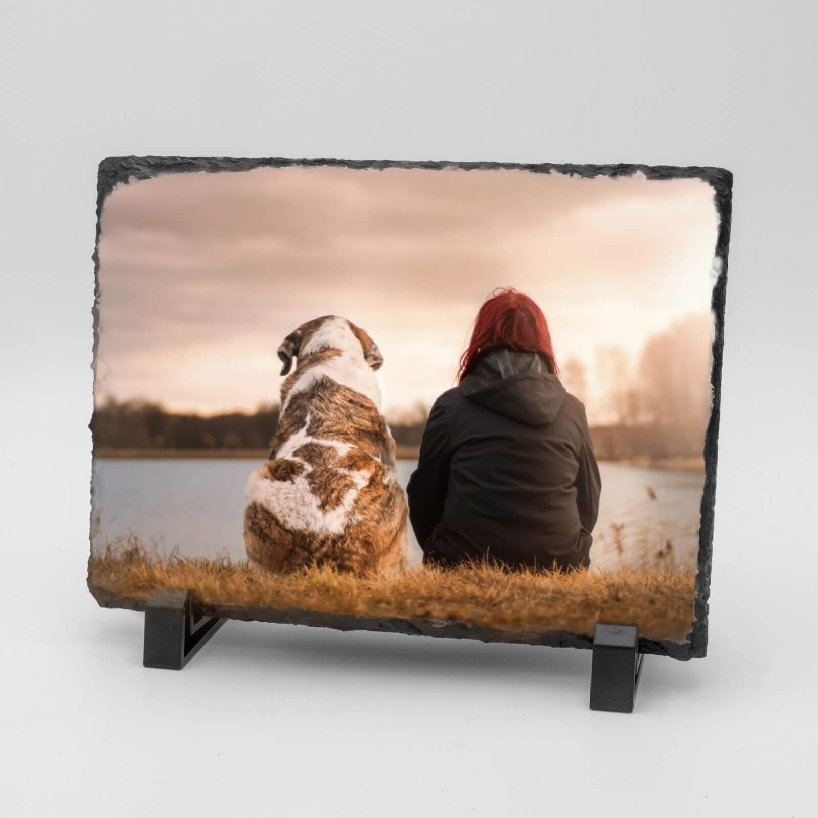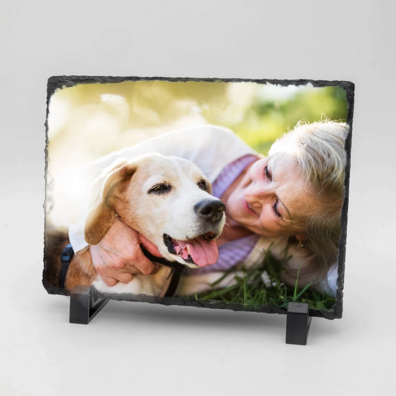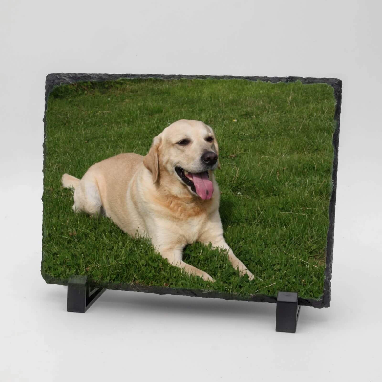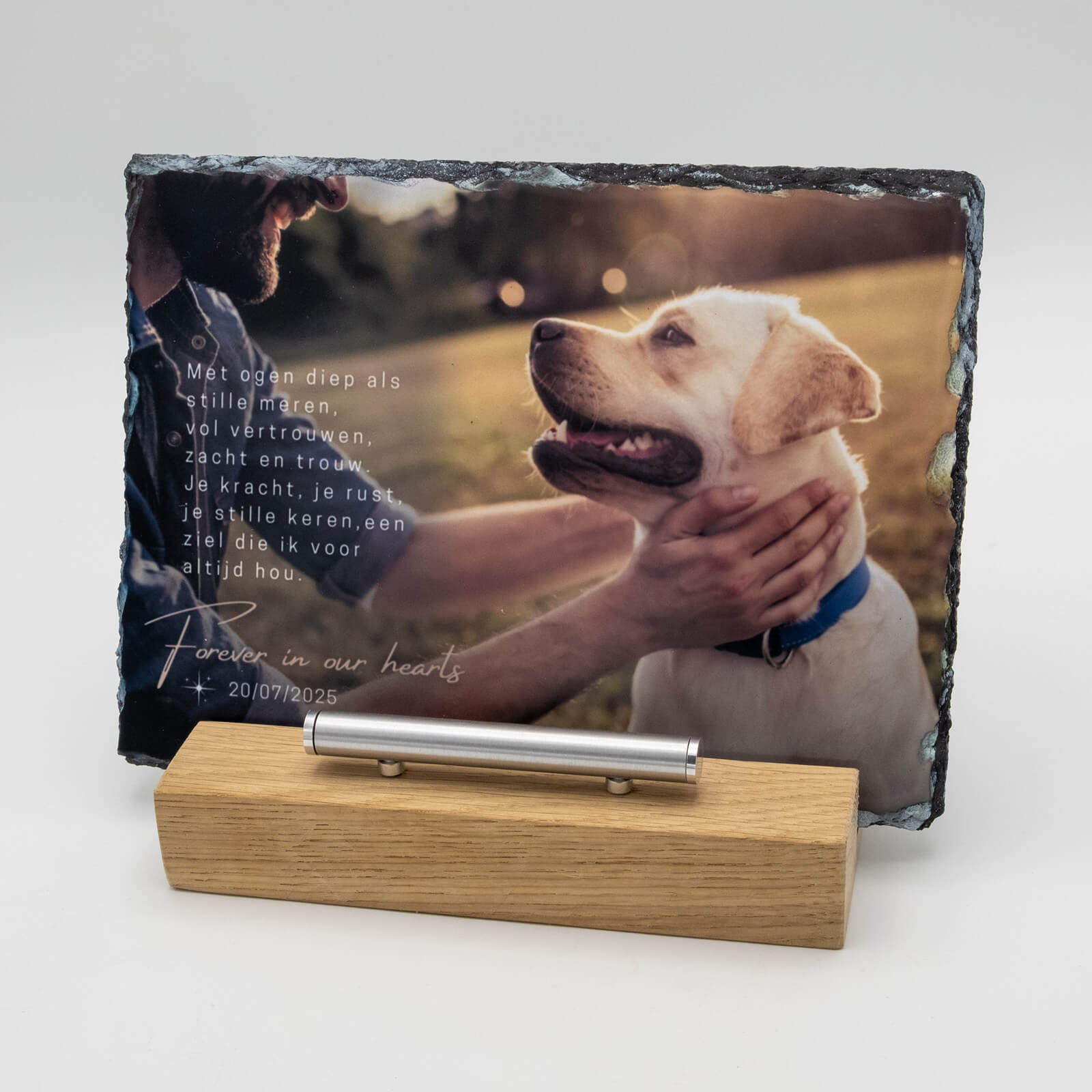 Rechthoekige Gedenktegel liggend van Leisteen voor Huisdieren – Herinner je Huisdier met Foto en Tekst
