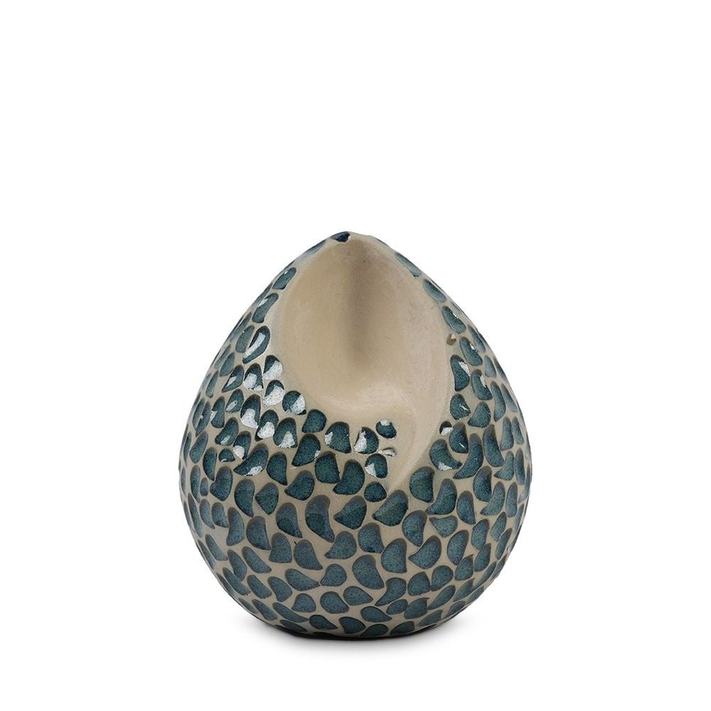 Bijzonder vormgegeven urn in de gestileerde vorm van een grote traan, met de hand vervaardigd door de gerenommeerde Vlaamse keramiste Bernadette Van Den Steen.
