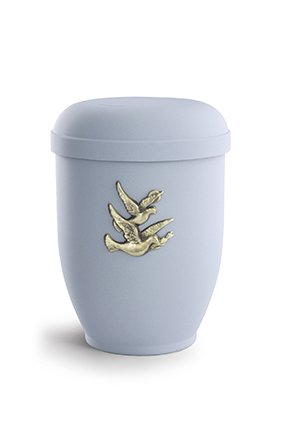 De 'Zwerm Vogels Bio Urn' is een 100% ecologisch product dat aan alle Europese normen voldoet. Deze eco urn is gemaakt van plantaardige componenten die 100% afbreekbaar zijn. Éénmaal in de aarde begraven zal de urn, afhankelijk van de weersomstandigheden, geheel afbreken. Op deze manier zal de as van uw overleden dierbare 'teruggegeven' worden aan de natuur, zonder schade te veroorzaken aan het milieu: een mooi en symbolisch gebaar. De 'Zwerm Vogels Bio Urn' heeft een zachtgrijze kleur en is voorzien van een prachtige messing vogelprint. De urn is 25.5 cm hoog, weegt 0.50 Kg en heeft een diameter van 19.5 cm. De inhoud van deze urn is geschikt voor het bewaren van een gedeelte of de volledige hoeveelheid as van uw overleden dierbare. U kunt er ook voor kiezen om deze unieke urn in eerste instantie een mooi plekje in huis te geven, alvorens u de urn gaat begraven in de aarde. Afscheid nemen hoeft dus niet meteen, u kiest zelf het juiste moment uit.